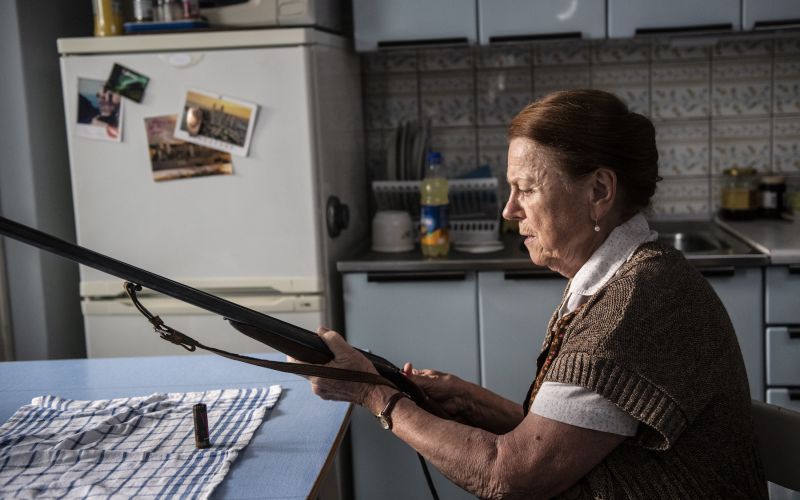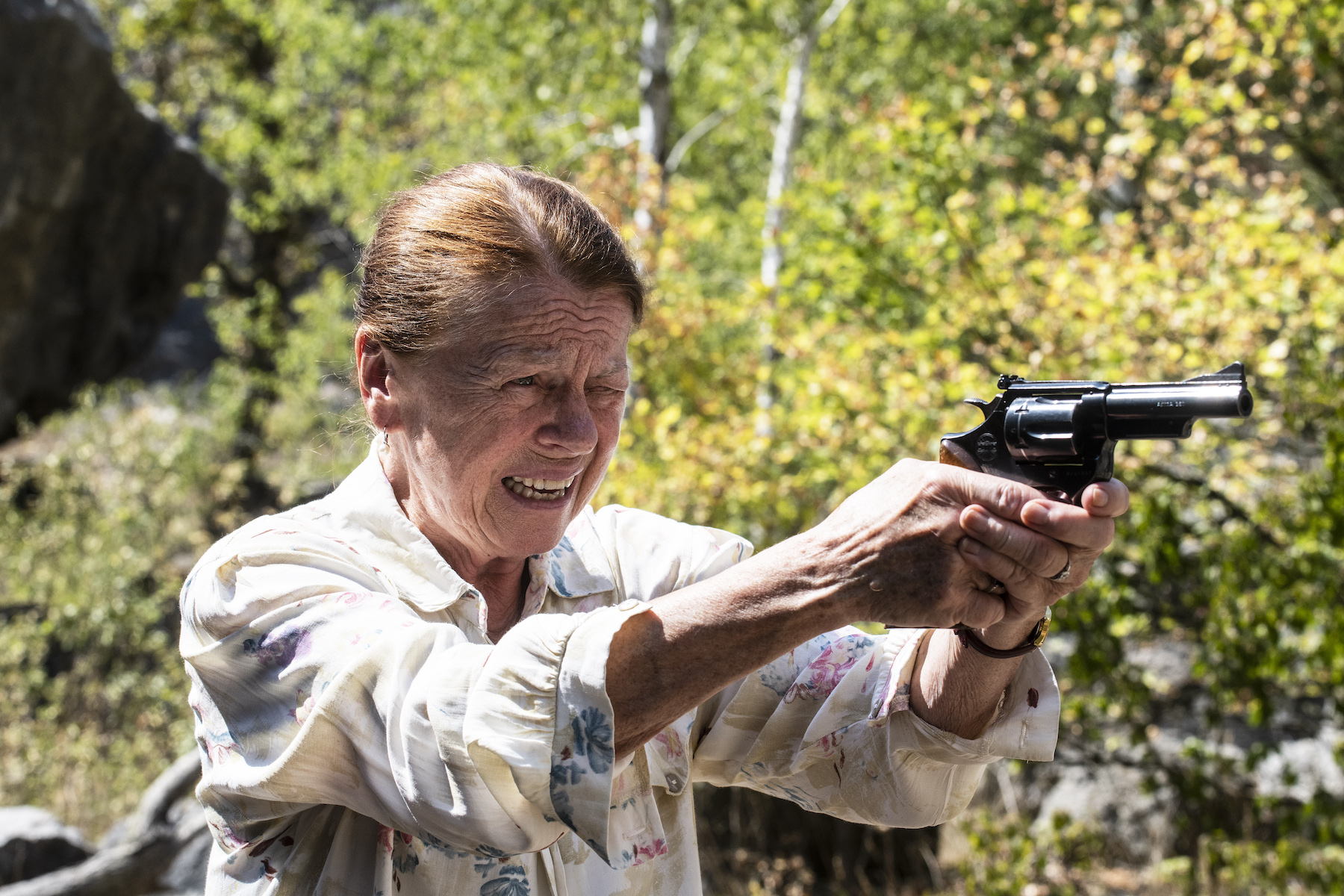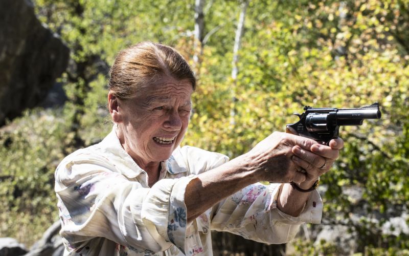 Komedie Teroristka je příběhem učitelky v důchodu, která celý život učila žáky, že základem všeho je slušnost a násilí nic neřeší. Jenže zjistí, že přesně na to gauneři spoléhají. "Učitelky v důchodu přece nestřílejí lidi," říká darebák. "Právě. Ale teď už si tím nikdy nebude jistý," odpoví mu paní, než odjistí zbraň.